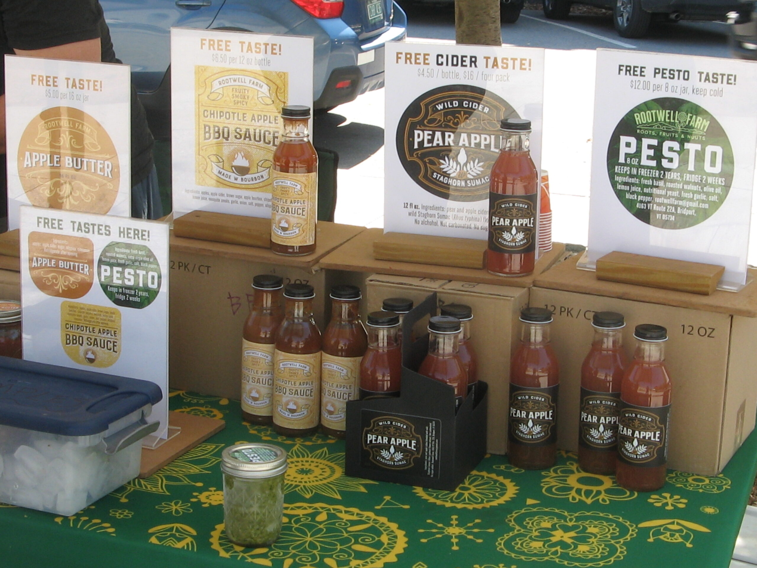 Delicious foods that are healthy for people and the environment including cider, BBQ sauce, hot sauce, pesto, all natural dog treats, seasonal veggies.